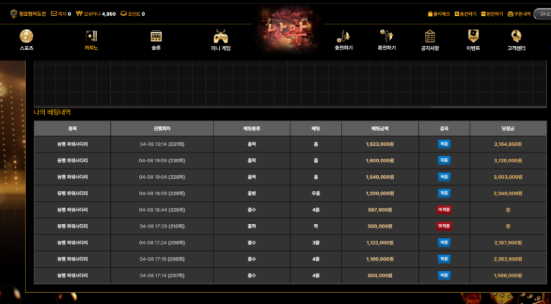 꽁머니를 이용하여 배팅을 시작한 후에도 한 사이트에 많은 금액을 한꺼번에 입금하여 배팅하는 것은 지양해 주세요.