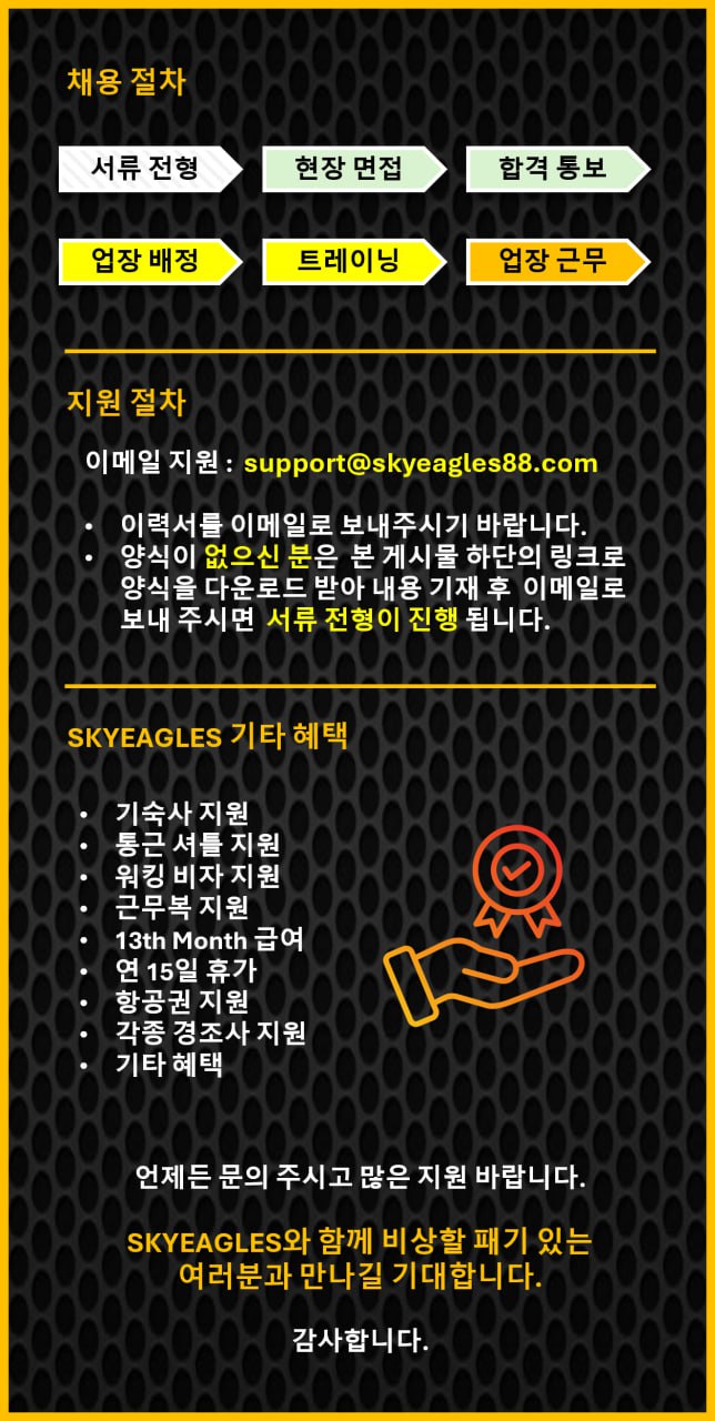 SKYEAGLES VIP CLUB에 동반 성장할 직원을 모집합니다!